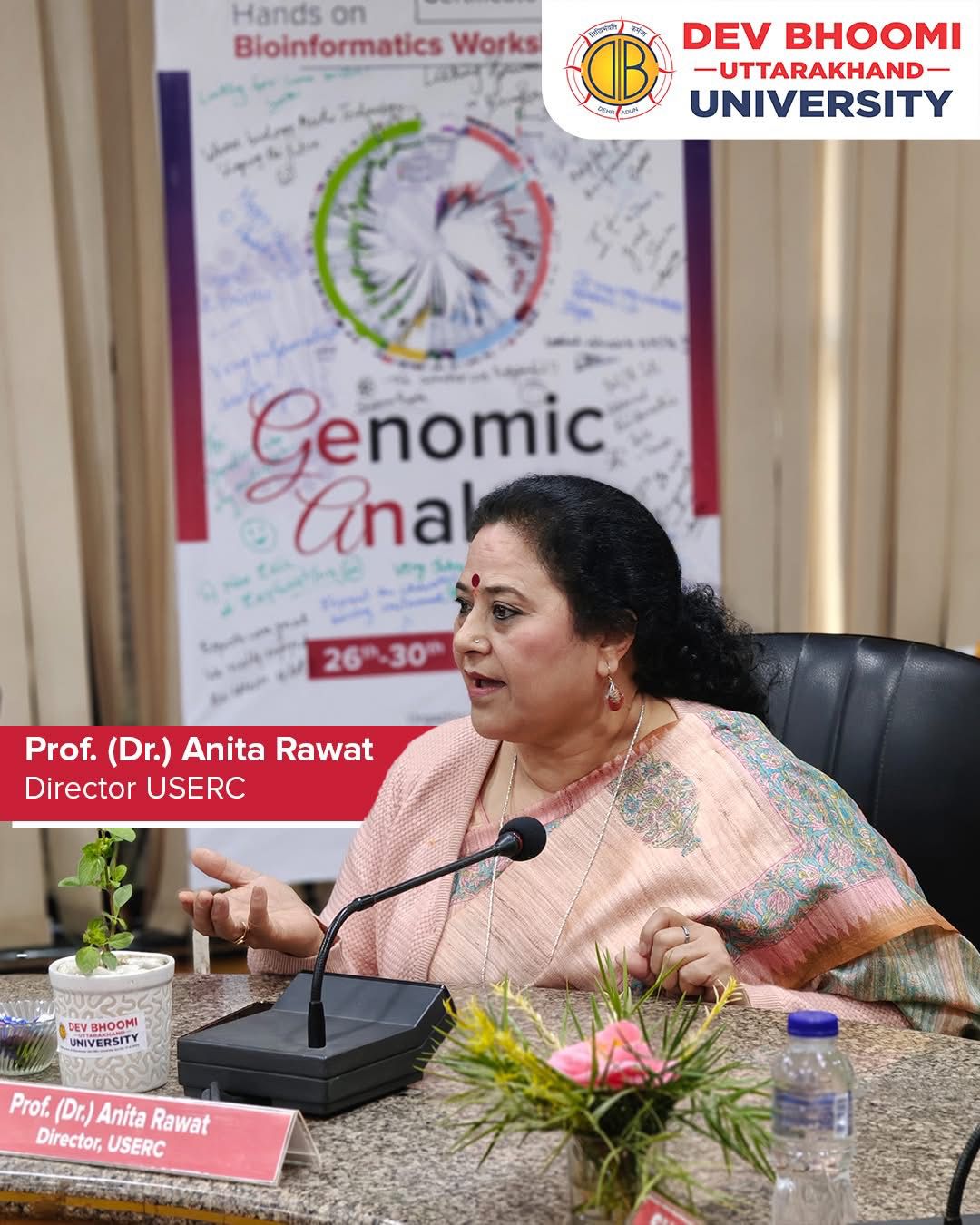 “USERC Centre of Excellence in Bioinformatics” established by the Uttarakhand Science Education and Research Center (USERC) at the Devbhoomi Uttarakhand University campus was inaugurated by the Chief Guest, Director of USERC, Professor (Dr.) Anita Rawat. On this occasion, Professor Rawat, in her address, stated that this center of excellence established by USERC will not only assist students in their coursework in the field of bioinformatics but will also provide them with practical training, guiding them towards a successful career.